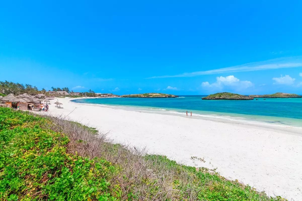 di sabbia bianca e fine, attrezzata con lettini e teli mare a disposizione dei clienti. Anche questa zona della costa del Kenya è soggetta al fenomeno delle maree. A intervalli regolari di ogni sei ore si potrà assistere a uno spettacolo inaspettato in cui il mare si ritira per lasciar affiorare i fondali e poi tornare a sommergere la sabbia bianchissima.