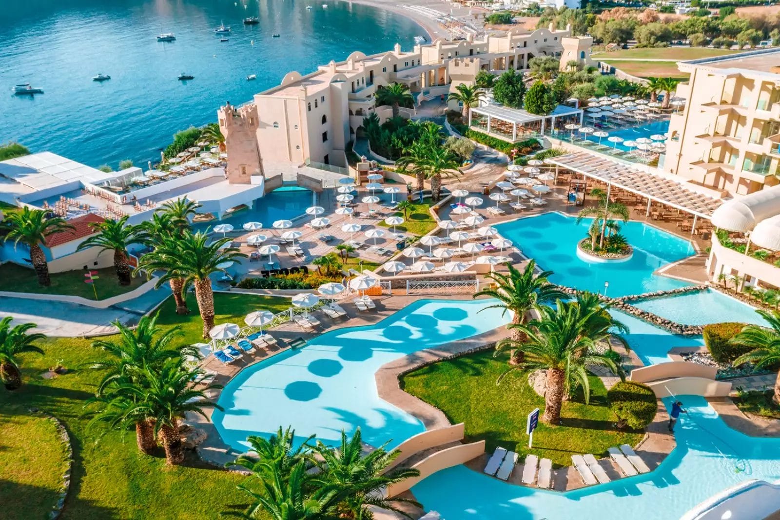 La splendida spiaggia di sabbia e ciottoli di Vlicha dista circa 150 m. Dispone di 5 piscine di cui 1 per bambini e 2 relax riservate ai soli adulti, e di un acquapark con 6 scivoli d’acqua, 3 per adulti e 3 per bambini.