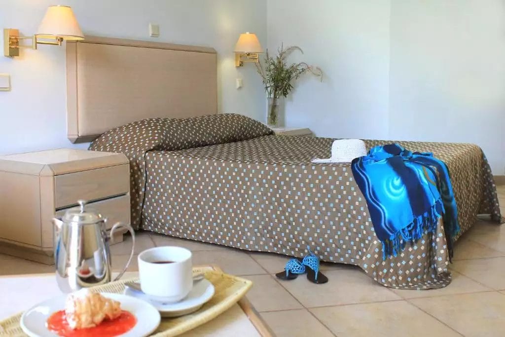La struttura dispone di 387 camere dislocate tra il corpo centrale e gli edifici annessi. Tutte le camere sono dotate di asciugacapelli, aria condizionata con controllo individuale, accesso internet Wi-Fi, telefono, TV satellitare, mini frigo rifornito con una bottiglia d’acqua all’arrivo, terrazza o balcone. A pagamento: cassetta di sicurezza.