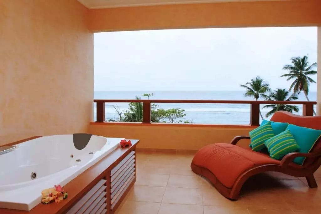 Tutte le 30 spaziose camere del Resort ti offrono una vista mozzafiato sull’oceano. Se vorrai rilassarti del tutto, dirigiti alla Spa arroccata su una falesia di granito e circondata da vegetazione tropicale. I più coraggiosi potranno praticare l’immersione in apnea e quella subacquea, mentre gli amanti della natura potranno scoprire i tesori delle montagne dell’isola percorrendo uno dei sentieri che partono dall’hotel. Il Resort ti garantirà inoltre anche incantevoli momenti di perfetta intimità.