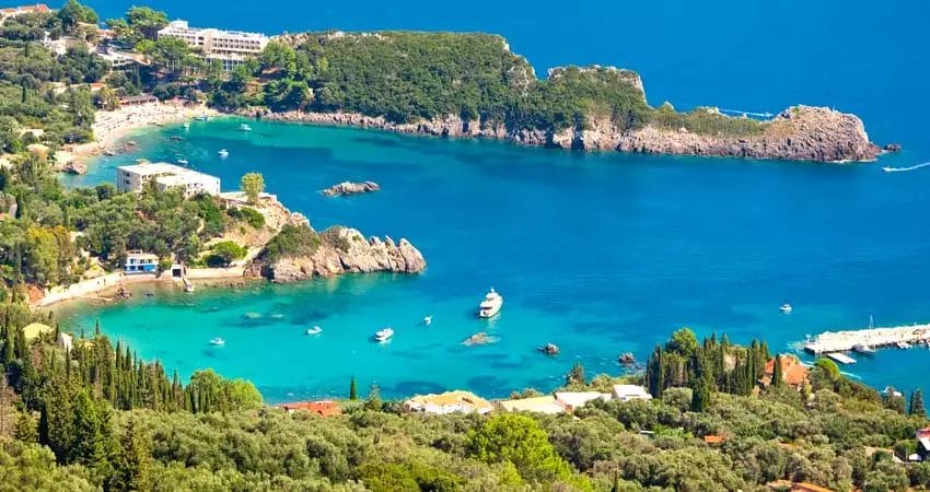 E’ la più settentrionale delle isole ioniche, la seconda per grandezza e la più vicina all’Italia. Come tutte le altre isole dell’arcipelago è ricoperta da una ricchissima vegetazione che incontrando le acque cristalline delle sue coste, crea un connubio perfetto tra il verde degli alberi di ulivo e l’azzurro del mare. Corfù offre una straordinaria varietà di coste e spiagge, come quelle lunghe e sabbiose di Glyfada, la spiaggia dalla sabbia dorata, o le dune della spiaggia di Issos, quelle famosissime delle piccole baie in successione di Paleokastritsa, quelle di bianchi ciottoli e dalle acque chiarissime e sempre calme di Barbati, per finire a quelle riservate tra mille insenature rocciose di Kassiopi o delle baie gemelle di Porto Timoni. Il capoluogo è Corfù Town, il cui centro storico è stato dichiarato patrimonio storico protetto dall’Unesco, vivissimo centro che coniuga il suo affascinante stile architettonico veneziano perfettamente conservato e una vita notturna vivacissima. Nel cerchio storico acchiuso tra le due fortezze veneziane, si susseguono stretti vicoli e piccole piazzette, che ricordano calli e campielli veneziani, ricchissimi di negozi, mentre sulla principale via di passeggio della città, il Liston, si incontra un’interminabile serie di bar e locali di tendenza. Per continuare le movimentate notti sull’isola, lungo la “disco street”, la strada che dal porto va verso il nord dell’isola, si trovano le più famose e esclusive discoteche come il Must, il Villa Mercedes o il White Pearl.
