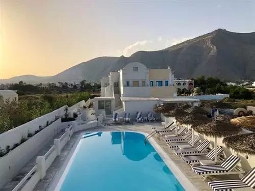 In perfetto stile cicladico, questo piccolo hotel 3* si affaccia direttamente sulla lunga spiaggia di Perissa, località balneare famosa per i suoi locali e lounge bar. La cittadina di Thira è raggiungibile in breve tempo, così come la rinomatissima spiaggia di Kokkini Ammos, dove è impossibile non percepire l’essenza vulcanica di Santorini.
