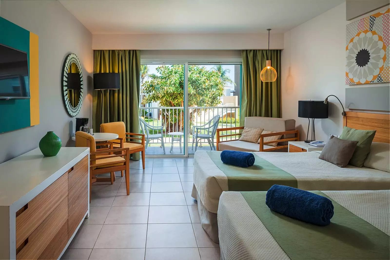 502 camere dislocate di diversi edifici a 3 piani collocate attorno alla piscina e alcune villette in prossimità della spiaggia dove si trovano le camere premium vista mare e le suite playa. Tutte le camere sono dotate di servizi privati con doccia, asciugacapelli, aria condizionata, telefono, TV satellitare, Wi-Fi, minibar con fornitura giornaliera, bollitore per il caffè, asse e ferro da stiro, cassetta di sicurezza e balcone. L’occupazione massima è di 2 adulti e 2 bambini o 3 adulti in standard e standard vista piscina, 2 adulti in premium standard e 2 adulti e 1 bambino in premium vista oceano, premium fronte oceano e suite playa.